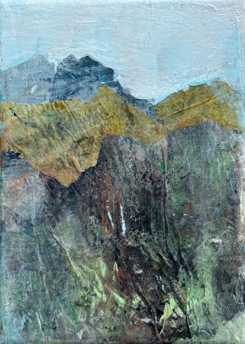 Explore these charming small-scale landscapes crafted from a blend of collage, acrylic, and upcycled mixed media elements. Perfect for cozy spaces, each mini offers a pop of color sure to brighten your day. Each little gem packs a punch with bold textures, vivid colors, and intricate details that offer a bird's eye view of the natural world.